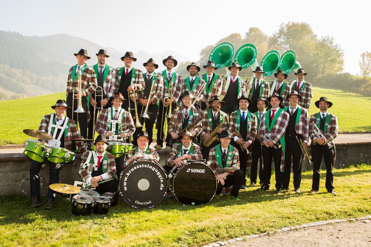 Mit Gründung der Krüzsteinguggis 1984 wurde das Fundament für eine erfolgreiche Guggenmusik gelegt. Das Outfit mit dem typischen Guggifrack im Rot-Grünen Karomuster, Hemd, Krawatte, Gilet, schwarzem Hut und Hose sowie den bunten Schuhen wurde in Anlehnung an die Narrengildefarben von Häs und Gilderat gewählt.Heute bestehen die Krüzsteinguggis aus 35 Musikern und wollen mit Blas- und Rhythmusinstrumenten immer wieder aufs Neue ein musikalisches Feuerwerk entfachen.